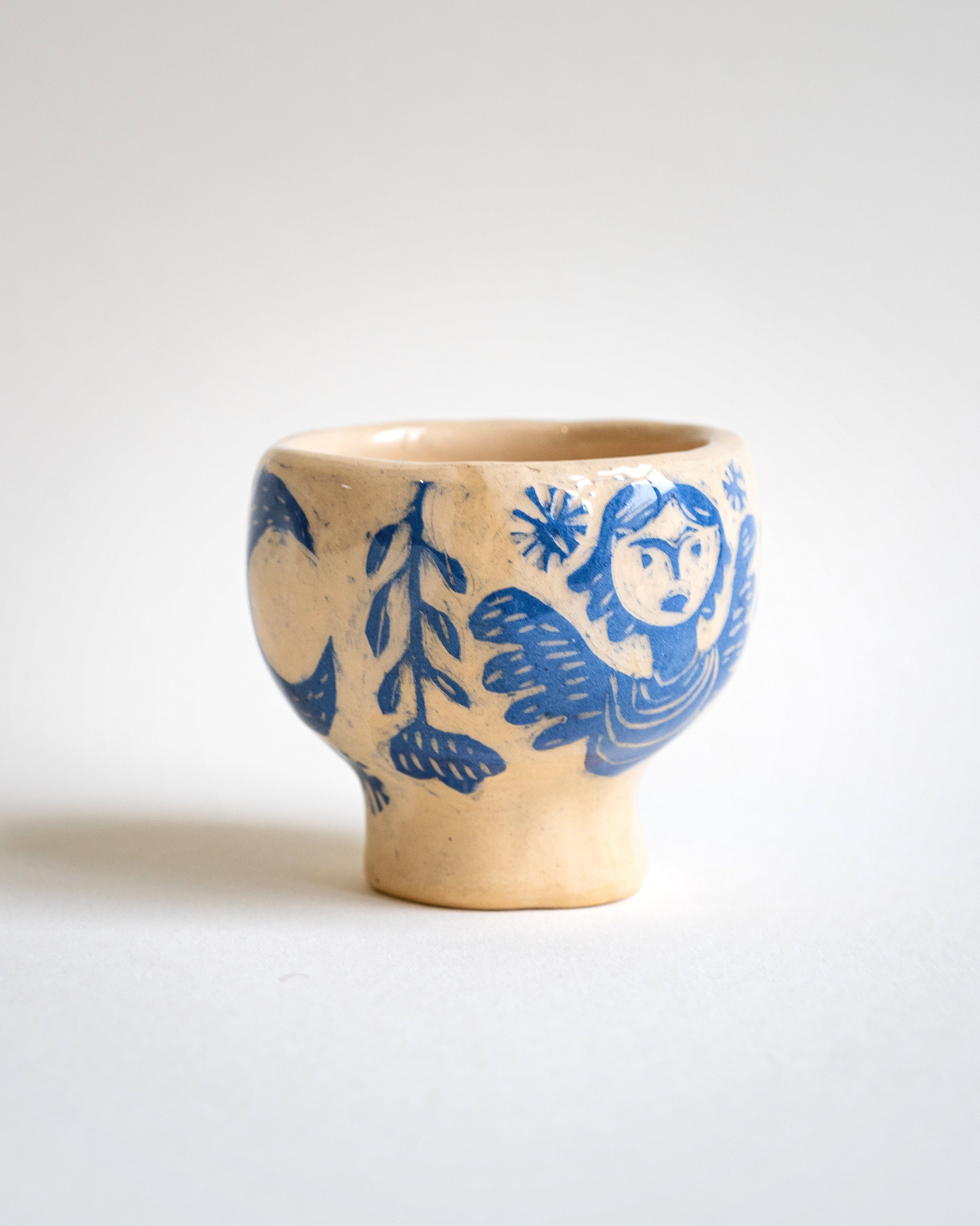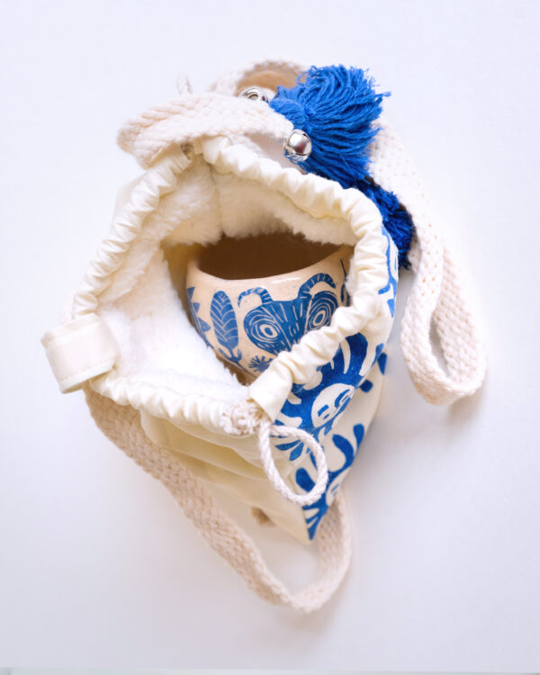 Хто виготовив: Ідея чарки та дизайн мішечка pelekhata project. Виготовила та розписала чарочку керамістка Юлія Дунаєва