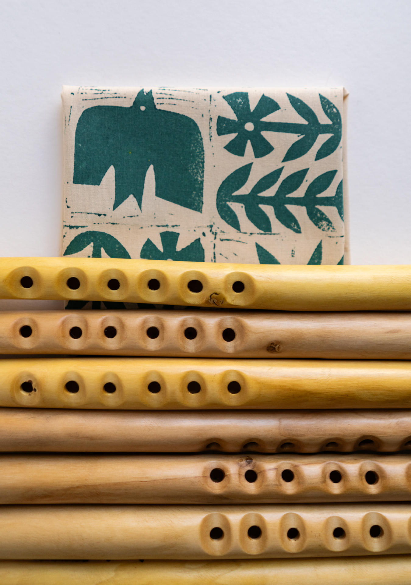 Окрім сопілки або дудки, як на неї кажуть на Волині, ви отримуєте короткий навчальний курс від Дмитра Березюка, майстра народних інструментів Волині та Полісся, з коротких п’яти відео. У них ви дізнаєтесь базову інформацію про цей народний інструмент, побачите як створюється сопілка поетапно та вивчите дві традиційні мелодії. Курс записано українською мовою. До сопілки ми даруємо серветку-хустку з ручною вибійкою за мотивами веснянок.